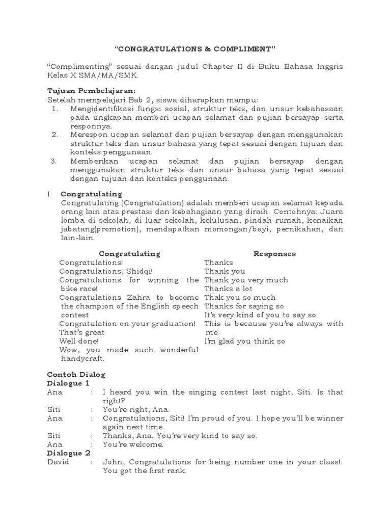Contoh Dialog Compliment Dan Congratulation - Expressions Of Compliment Pengertian Penggunaan Contoh Kalimat Dialog / Compliment dan congratulation · contoh dialog: